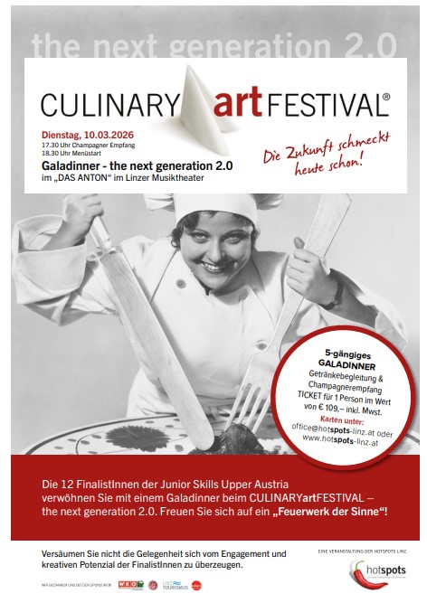Bei den „JuniorSkills OÖ” der Wirtschaftskammer Oberösterreich fanden die Vorausscheidungen für das CULINARYartFESTIVAL statt. Die besten Vier sicherten sich eines der begehrten Teilnahmetickets für diesen Gala-Abend.
